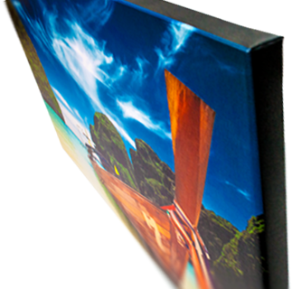 Similar to canvas wraps in appearance, a canvas box provides sharp corners and edges for a “cleaner” appearance as opposed to the organic and softer canvas wrap. Art is adhered directly to a sturdy MDF box specially constructed for this purpose.